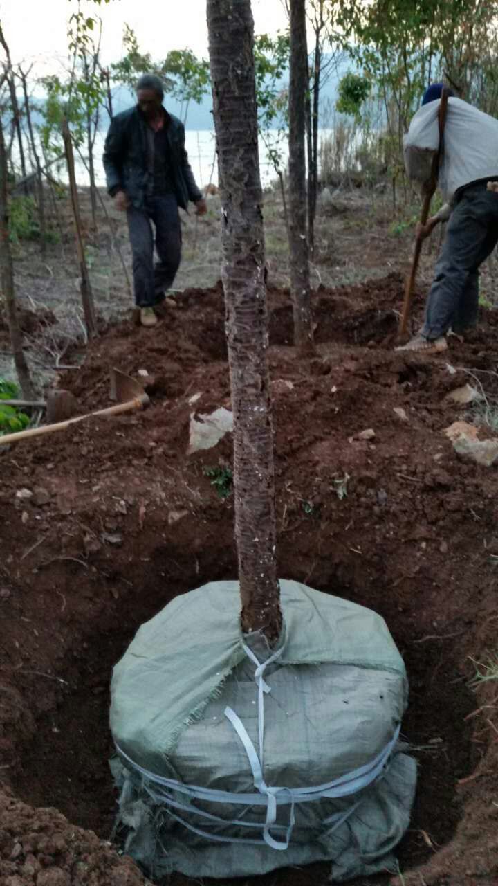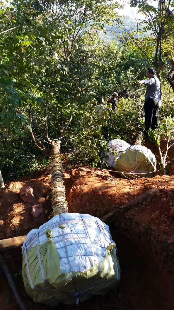 中大苗取土球用编织袋作外包装,然后用橡皮筋扎紧,以保证苗木在运输途中不失水,即便部分土球散落也不影响成活。